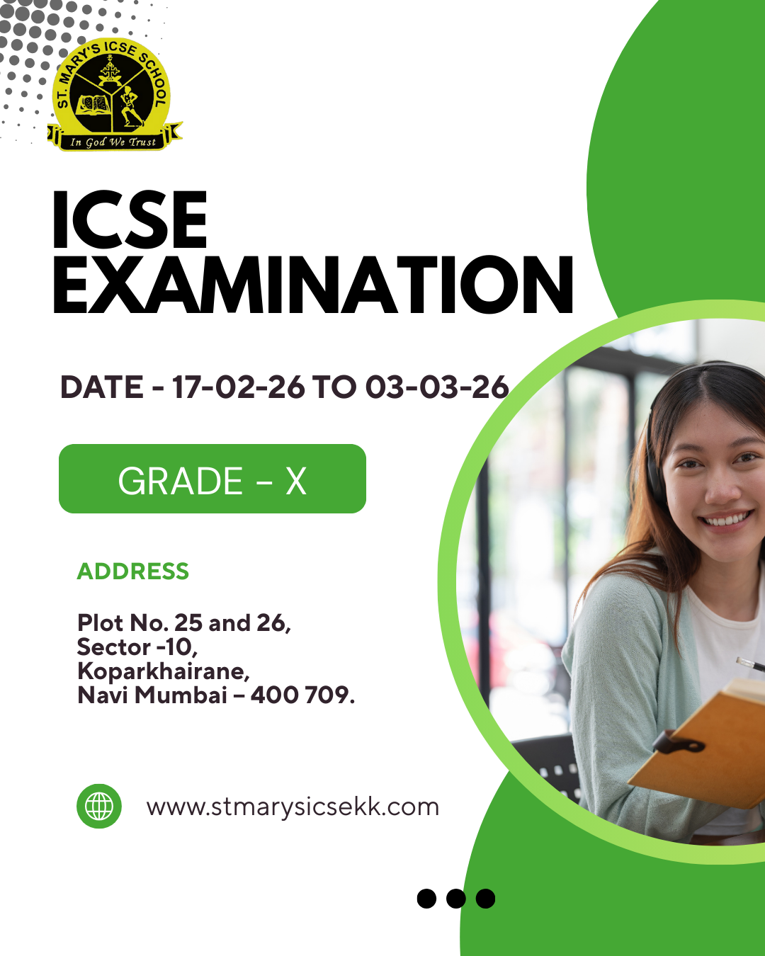 9:25 am - 4:15 pm Plot No. 25 and 26, Sector -10, Koparkhairane, Navi Mumbai – 400 709.